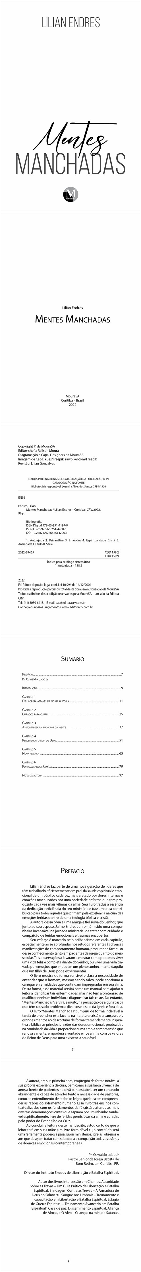 Este livro é dedicado a todas as pessoas que passam por situações difíceis em suas vidas, muitas vezes se encontram sozinhas, perdidas em meio a um turbilhão de pensamentos e emoções. Nesta obra, derramo um pouco da minha alma, compartilho minhas experiências e como consegui com a ajuda de uma espiritualidade cristã saudável, e conhecimento técnico da psicanálise, enfrentar e vencer as “vicissitudes da vida”, purificar minha mente das manchas que os traumas trazem a todos nós.